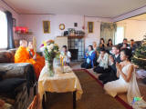 วันนี้ลูกสาวคุณอุทิศ แต่งงาน มีงานแบบอิสาน มีงานเลี้ยงพระเพล เราไปช่วยขนสัมภาระจากวัด และช่วยตามพระอาจารย์เกษตรบอกให้ช่วย รวมทั้งจัดการข้าวของเมื่อถึงบ้าน ที่ห่างจากวัดราว 1 กม. เราจะเห็นความเข้ากันระหว่างพุทธและคริสต์ (3-5) ตรงข้ามเก้าอี้รับรองพระสงฆ์ก็มีต้นคริสต์มาส ทุกคนก็เต็มใจ ที่จะจัดการให้เหมาะกับประเพณีทั้งไทย และฝรั่ง เรา (พี่เอก น้องกร และผม) คุ้นเคยกับบ้านนี้ดี เรามักพบกันที่วัดเกือบทุกวัน ไม่คนใดก็คนหนึ่งในบ้านต้องมาใส่บาตรเป็นประจำ ครอบครัวนี้นับเป็นครอบครัวที่มีคุโณปการกับวัดมาก ตั้งแต่เริ่มตั้งวัด เป็นธุระให้ เป็นช่างช่วยปรับปรุงวัด และช่วยวัดมากมายไม่ขาดจนถึงช่วงที่เรามาก็ยังคงเส้นคงวาน่านับถือมาก เจ้าสาวแต่งหน้าเอง แต่งตัวเอง คงมั่นใจว่าสามารถ แต่ดูเหมือนแต่งหน้าประจำวัน พี่เอกเลยอาสา ช่วยแต่งหน้าให้อีกจนเนียนพอ และเข้มพอ (6) ประมาณว่าเจ้าบ่าวหันมาชมบ่อยๆ วันนี้เธอสวยมาก (7) พิธีนั้นเรียบง่าย และสวยงาม(8) จุดเทียนบูชา ฟังธรรม ฟังสวด (9-10) อะไรประมาณนี้ พวกเรา และเพื่อนๆ เจ้าบ่าวเจ้าสาว ก็ช่วยถ่ายรูป ถ่ายวิดิโอ (11) อันที่จริงผมก็ดูไม่ออกว่าอะไรยังไง ถึงไหนกันแล้ว