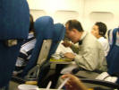 สักครู่หลังเครื่องสแตนบายแล้ว เริ่มฟังเพลง มีภาพยนตร์ เรื่องยาวให้ชม (20) เสริฟหูฟัง ใครดูหนัง เลือกภาษาได้ ใครไม่ดูหนังก็เลือกฟังเพลงได้หลายช่อง จากนั้นมีเครื่องดื่มและของว่างเสริฟ เป็นพวกน้ำอัดลม น้ำผลไม้ และถั่วอบเนย ใครจะรับไวน์ขาว ไวน์แดง ก็ได้ อีกราว 1 ชั่วโมงต่อมาก็เสริฟ อาหารเย็น เป็นบะหมี่เป็ด และข้าวหมูอบให้เลือก (22-23) ดูเอาเถิดท่านผู้ชม อร่อยจริงจริ๊งๆ อิอิ ใกล้ถึงละ มีการหยุดภาพยนตร์ แสดงแผนที่การเดินทางเป็นระยะๆ และกัปตัน ก็กระจายเสียงทักทาย ที่กรุงเทพฯ อุณหภูมิ ประมาณ 35 องศา แต่ที่กุ้ยหลิน มีเมฆ และฝนเล็กน้อย อุณหภูมิประมาณ 4 องศา ไม่ต้องสงสัยเลย บางคนเริ่มรื้อกระเป๋า เตรียมเสื้อกันหนาวและหมวก ชัวร์ๆ หนาวจัดแน่ๆ