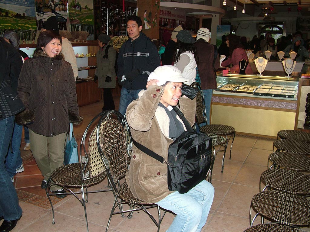 เราพักกันที่โรงแรม Guilin Jinwan เลขที่ 99 ถนน South Zhong Shang ที่ล๊อบบี้โรงแรมเรารอกันไม่นานนัก เพราะไกด์ติดต่อไว้เรียบร้อย (3) เราได้รับคีย์การ์ดตั้งแต่บนรถ และสัมภาระ ถูกขนไปไว้ให้บนห้องตั้งแต่เรารับประทานอาหารกันแล้ว ระว่างรอลิฟต์และคำแนะนำ (4) ก็ถ่ายรูปอีกแล้ว (5) ก็หนาวจริงๆ ถ่ายรูปเหรอ ได้ๆ (6) แม๊ หายหนาวเลยนะ เราเริ่มหาที่เที่ยวและชอปวันแรกกัน (7) แต่ผมหนาวจริงๆ (8) ไปไหนก็ไป สู้ตายครับ แต่ขออัดเต็มที่ก่อน หลังจากขึ้นไปสำรวจสัมภาระบนห้องแล้ว เราก็ไปเดินเล่น เวลาที่นี่ เร็วกว่าประเทศไทย 1 ชั่วโมง เวลาทั้งประเทศจีน เท่ากัน