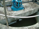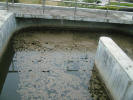 เราลงมาจากอาคารคลองวนเวียน สวยดี (58-59) เป็นบริเวณรอบๆ ระหว่างอาคาร ต่อไปเรามาดูอาคารน้ำรูปกลมๆ ใช้การกวนช้า น้ำใสจะล้นออกมา (60-68) ส่งไปยังอาคารฆ่าเชื้อ ส่วนตะกอน ถูกส่ง ผ่านวาล์ว (69) ไปอาคารรวมตะกอน (70-79) ที่นี่มีกลิ่น เนื่องจากเป็นการกำจัดจุลินทรีย์ให้ตาย เมื่อขาดอากาศ จะใช้ระบบไม่ใช้อากาศหายใจ ทำให้เกิดกาซมีเทน แต่เนื่องจากมีไม่มากนัก จึงไม่มีกลิ่นรุนแรง ส่วนนี้จะถูกส่งไปขายทำเป็นปุ๋ยต่อไป