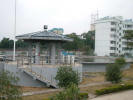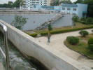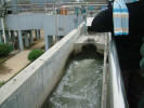 มาถึงบ่อดักขยะ (6-12) จุดที่ดูจะใช้การกั้นของลอยไว้ ด้วยกำแพง แล้วตักออกธรรมดา จากนั้นเดินไปผ่านอาคารรูปร่างแปลกๆ (13) ไม่แน่ใจว่าจะเป็นห้องแลปหรือเปล่า แล้วมาถึงอาคารแยกขยะขนาดใหญ่ (14-21) ใช้ตะขอ ทำด้วยพลาสติก (ไม่เป็นสนิม) ติดสายพานหมุนลากเกี่ยวขยะใหญ่ขึ้นมาเพื่อนำไปเป็นขยะต่อไป แล้วส่งต่อไปแยกเอาทราย ตะกอนเล็กๆ ซึ่งมักย่อยสลายไม่ได้ด้วยขบวนการทางชีววิทยา โดยการผ่านถังทรงกรวยกวนให้ตกตะกอน (22-28) แป๊บหนึ่ง มีคนมาขอถ่ายรูป แชะ! (29) โอเค ไปต่อเลยครับ น้ำที่ผ่านการแยกขยะใหญ่ ตะกอนเล็ก ก็จะผ่านไปขบวนการทางชีวะภาพต่อ(30-31)