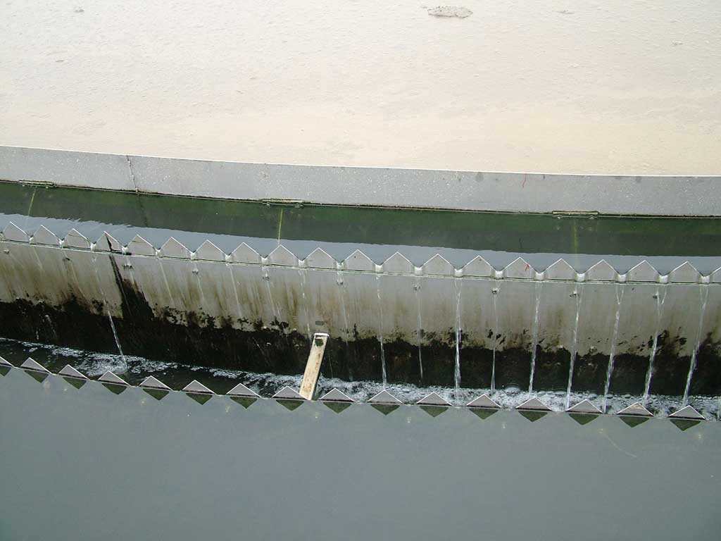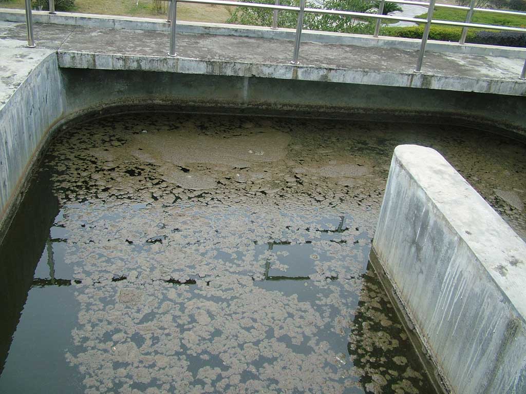 เราตามน้ำไปดูกระบวนการบำบัดเลย อาคารนี้ เป็นอาคารเลี้ยงเชื้อจุลินทรีย์ สำหรับใช้ย่อยสารที่อยู่ในน้ำเสีย ส่วนมากเป็นน้ำเสียจากบ้านเรือน ของเสียจะใช้แบคทีเรียกินเข้าไปแล้วย่อยออกมาเป็นสารอินทรีย์ ใช้วิธีเติมอากาศ ด้วยการเป่าลมจากข้างล่างขึ้นไป จุลินทรีย์จะใช้ออกซิเจนได้พอเพียง และน้ำจะหมุนเวียนดี เกิดกระบวนการกินและย่อยสลายโดยการใช้ออกซิเจน ทำให้กาซพลอยได้เป็นคาร์บอนไดออกไซด์ ซึ่งไม่มีกลิ่นเหม็น (36-47)
