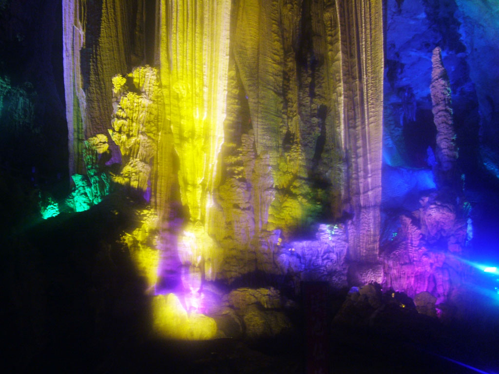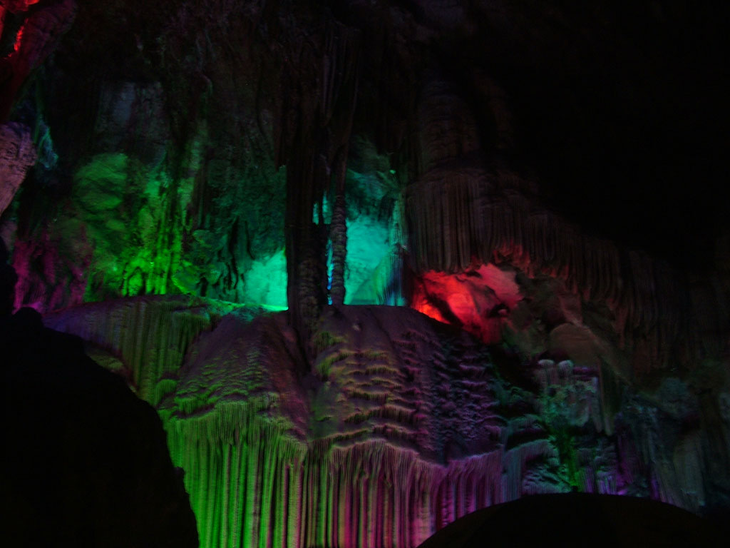 นี่คือที่มาของคำว่าหินงอกหินย้อยในภาษาจีน เรียกหินงอกว่า หินหน่อ และเรียกหินย้อยว่า หินนม คลิกดู(69) เพื่อนคนหนึ่งบอกว่า มีตั้งแต่ 18-80 เลย มาถึงจุดสูงสุดของถ้ำแล้ว นี่เป้นชั้นที่ 3 (สูงเท่าตึก 10 ชั้น หรือมากกว่า) (70-71) ถ่ายลงมาดูเหมือนเหวเลย ตรงนี้ดูไม่ออก (72) เขามีชื่อแหละ ไม่งั้นไม่ส่องไฟ จำไม่ได้อ่ะ เราค่อยๆ ลงมาแล้ว แหงนดูข้างบน สูงอย่างนี้เลย (73-74) ถึงปากถ้าทางออกแล้ว หันไปทางซ้าย (75) หันไปข้างหลัง (76) เราลอดมาหลายจุด จุดสุดท้ายที่มีชื่อ คือสิงโตส่งแขก (77) มองเห็นไหมครับ ตาแดงๆ (มองตั้งนาน) เราได้รับคำเตือนให้ใส่เสื้อให้อบอุ่น ขณะนี้ร้อนมากๆ น้องทรายบอก ไม่ได้นะ ห้ามออกไปเจออากาศเย็น ต้องปรับตัวก่อนข่างนอก ลบ 1 องศา อาจช็อกได้ โอเค ก็ใส่เสื้อ แล้วต้องไปยืนใกล้หน้าถ้า ก่อนออกมาเพื่อปรับร่างกาย เย็นสบายๆ อย่างน้อย 5 นาที ก่อนออกไปด้านนอก โดยมีน้องทราย ควบคุมการปรับตัว ป้องกันไม่ให้เราป่วยนั่นเอง ขอบคุณหลายๆ เด้อ เหลือคนสุดท้ายไม่กี่คน และเราเป็นกลุ่มสุดท้ายที่ออกมาทุ่มกว่าเกือบสองทุ่มแล้ว และไฟภายในก็ค่อยๆ ดับลง ปิดฉากการแสดงของวันนี้