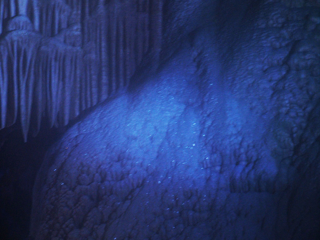 ในถ้ำเงิน ส่วนใหญ่เป็นสีเงิน หินที่นี่มีประกายระยิบระยับของของผลึกคาร์บอนเนต ซึ่งน้ำฝน ละลายหินปูนออกมาทีละน้อยๆ สะสมเป็นผลึก ผมมากับบัส 2 คุณหมารับหน้าที่บรรยายเช่นเคย (21) การถูถ้า เป็นเรื่องของการจินตนาการ ส่วนใหญ่จะชี้ให้ดูว่า ทางนี้ ทางนั้น คล้ายกับอะไร ถ้ำนี้ เป็นถ้าสำหรับท่องเที่ยว ที่จัดทางเดิน เป็นระเบียง ทำด้วยซีเมนต์ ปูด้วยหินอ่อนและหินแกรนิต ประดับเสาหินอ่อน เดินขึ้นทางลาดไม่ชันมาก แม้ไม่แข็งแรง ก็ค่อยๆ เดินขึ้นได้ ไม่เหนื่อย มีจุดชมถ้าเป็นช่วงๆ ภาพที่ถ่ายมา จดไม่ได้ มันเยอะ และค่อนข้างมืด ท่านผู้อ่านลองจินตนนการดูว่าเหมือนไหม ภาพ (22) สองบัณฑิตร่ำสุราบนยอดเขา (ก้อ บอกไม่ได้ว่าบัณฑิตนี่นั่งตรงไหน) โต๊ะอาหาร(23) แสงเหนือม่วง (24) อันนี้ตั้งเอง พอดีถ่ายตอนไฟดับอัตโนมัติ สาวแม้วชายตา (25 ตรงกลางรูป) ป่าสน (26) รูปนี้ไม่ได้บอก (27-32) เห็นสวยๆ ก็ถ่ายมา รูปสววน้อยในอ่างน้ำ (33) พระพุทธเจ้าเทศนา (34-35) สาธุ เห็นพระพุทธเจ้าไหม ตรงนี้ (36) เป็นข้างทางสวยๆ