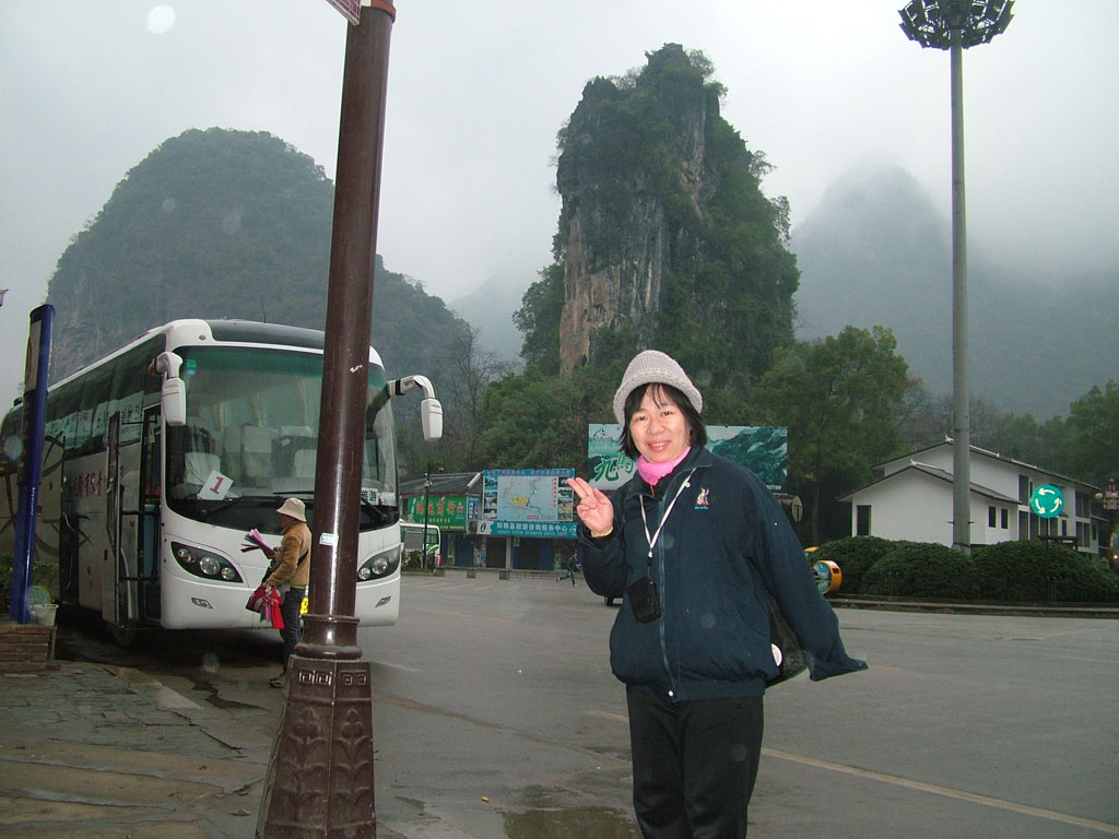วันนี้เป็นวันสุดท้ายของการเยี่ยมเมืองกุ้ยหลินแล้วครับ และเป็นวันที่เราพบกับวิวทิวทัศน์สิงแวดล้อมที่สวยที่สุดของกุ้ยหลิน วันนี้เราพักที่โรงแรมนี้ (1) ชื่อโรงแรม New West Street Hotel หนาวมาก ประมาณ 2-3 องศา หลังอาหารเช้าเรามาถ่ายรูประหว่างรอรถออกเดินทาง นี่คือภาพด้านหน้าของโรงแรม (2-3) ซี่งเป็นสามแยก มีภูเขาหน่อสวยๆ คาดว่าด้านหน้า หลังประตูนี้จะเป็นสวนสาธารณะ และภาพนี้ เป็นด้านขวามือของโรงแรมดูจากด้านหน้า(4-5) ขณะนี้ เป็นชั่วโมงเร่งด่วน คนกำลังแย่งไปทำงาน จึงเป็นคนเดินทางเยอะแยะ (เห็นรึป่าว) แม๊ ช่างเป็นเมืองที่สงบเงียบอะไรอย่างนี้ วันนี้เป็นวันอังคาร เมืองท่องเที่ยวจึงมีผู้คนแค่นี้เอง โอ้ว! ถังขยะครับท่านผู้ชม (6) อย่าลืมว่าผมเป็นนักสิ่งแวดล้อม เจอถังขยะก็ชอบ น่านสนใจเป็นแบบอย่าง นี่แป็นถังขยะในเมือง จุดเด่นคือ ใช้เป็นป้ายโฆษณาได้ คนจีนนี่อะไรก็ต้องเป็นเงินเป็นทองไว้ก่อน และทุกเมือง ทุกอำเภอ ในเขตเมืองจะเป็นอย่างนี้หมด ง่ายต่อการโฆษณาเก็บเงิน และง่ายต่อการผลิต มาดูคนทำงานกันบ้าง เหลือบไปเห็นสาวจีนน่ารักๆ เลยเก็บเงาเธอมาฝากท่านผู้อ่าน(7) ส่วนใหญ่การแต่กายแฟชั่น จะเป็นทำนองนี้ หมายถึง ดูเป็นสากล ไม่ใช่ชาวบ้านๆ อย่างที่เห็นกันในข่าวหรือในหนัง นี่เป็นรถที่เรานั่งไปทัวร์กัน(8) ตั้งแต่วันแรก พี่นรินทร์ (9) เริ่มตามมาสู้อากาศหนาวๆ ด้วยกัน เลยได้รับเกียรติให้เป็นนายแบบ และพี่อุทัย (10) ช่วยถ่ายให้ผมด้วย(11) เป็นที่ระลึก เห็นภาพก็ขำตัวเอง นี่ไม่ได้เป็นดาราจำเป็นนะคับท่าน หนาวจริงๆ แล้วเราเลยพยายามโพสท์ท่าว่าไม่หนาว (12-19) แต่จริงๆ หนาวมาก และมีหมอกที่เม็ดใหญ่ยังกะฝนโปรยลงมา ลมแผ่วๆ ชอนไชเข้ามาไซ้ร์ซอกคอ โอ้ววว ขอขึ้นไปรับฮีตเตอร์บนรถก่อนละกัลลลล...