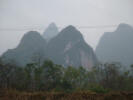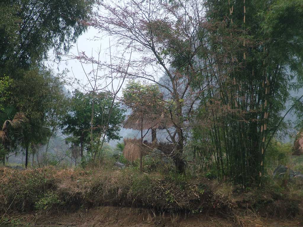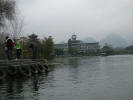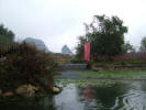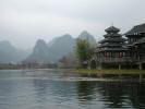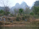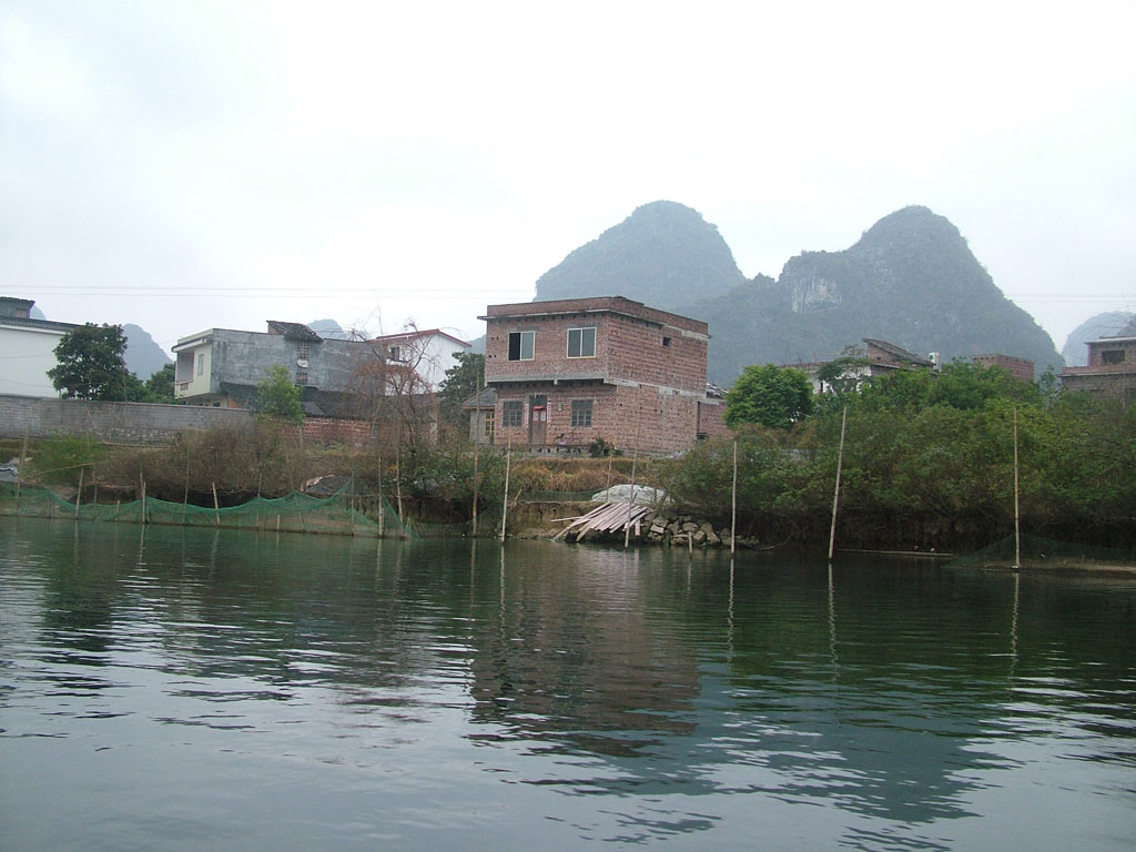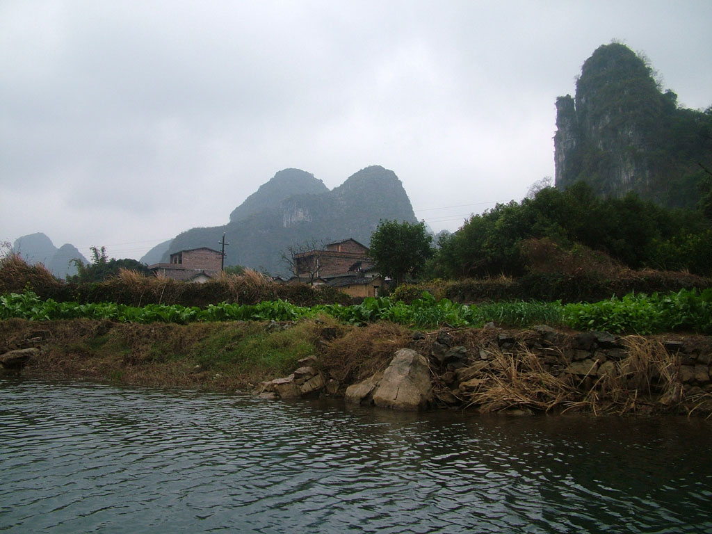 เราเยี่ยมชมเผ่าอ้วนดำแค่นี้ ภูเขาสวย (24) ทำให้ผู้คนทั่วไปอิจฉา สวยงามดังภาพวาด น้ำใส(25) จนมีสาหร่ายเจริญเติบโตได้ เนื่องจากแสงแดดส่องถึง นี่เป็นภาพ หน้าแล้ง (26) ยังคงความชุ่มชื้นด้วยความสมบูรณ์ของน้ำ และสิ่งแวดล้อม ผ่านป้อมยามหมู่บ้านออกมา (27) มีคนที่รับหน้าที่เป็น เหมือน รปภ. คอยตรวจตรา และยังส่งแขกด้วยหอกด้วย ช่วงนี้เป็นช่วงต่อหมู่บ้าน (28) ไก้ด์บอกว่า เรามาถึงประตูเข้าหมู่บ้าน เรียกว่า ประตูมังกร มีต้นไม้ดัดให้เป็นรูมังกรเหินหาว (29-30) ไหนๆๆ เราชะเง้อดูกันจนเรือเอียง ไกด์บอกถ่ายรูปไปดู จะเห็นเอง เห็นไหมท่านผู้ชม ผมก็เห็นตอนดูรูปนี่แหละ ตอนถ่ายก็ไม่เห็น เราไม่ขึ้นจากเรือ มองหมู่บ้านทางน้ำก็แล้วกัน ไก้ด์บอกว่า ภูเขาจะสวย ต้องมีเงาสะท้อนจากน้ำ ก็เห็นด้วยครับ นอกจากสวยดี ยังไม่ต้องรบกวนกิจกรรมปกติของชาวบ้านด้วย (ไม่ต้องชอปปิ้ง อิอิ) เราเลยเห็นการทำพืชผักสวนครัว (32-33-34-35-36-37) ผักหลักๆ ของที่นี่ยอดนิยมคือ ผักกาด กวางตุ้ง เขาจะสงวนชายฝั่งส่วนใหญ่ไม่ให้ตั้งบ้านเรือนริมน้ำ ทำให้มีการอนุรักษ์ชายฝั่งได้ดีหลายอย่าง ป้องกันน้ำท่วมได้ เพราะน้ำไหลดี มีแหล่งอนุบาลสัตว์น้ำ มีแหล่งอาหารทางน้ำตลอดไม่ขาดแคลน บ้านเรือนที่เป็นเอกลักษณ์ที่นี่ ก็คือหลังคาแบบหยางชั่ว แม้จะสร้างบ้านให้ทันสมัย มีพื้นที่ใช้สอยมากขึ้น แต่หลังคากระเบื้องดิน ยังเป็นที่นิยมแกมบังคับ เนื่องจาก นโยบายทำเมืองเป็นแหล่งท่องเที่ยว