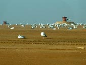 เมื่อออกมาจากจุดบำบัดน้ำเสียจากขยะ ก็นั่งรถต่อไปแหล่งกลบฝัง เขาฝังกลบทุกเซลทันทีที่ขยะลงครบจำนวนในเวลาไม่กี่ชั่วโมง ไม่ทิ้งเป็นหลายวัน กลบด้วยดินเหนียวจากภูเขาแล้วทับด้วยพลาสติกอีกที ทำให้ไม่มีกลิ่นมาก มีอาคารวิเคราะห์กลิ่นอยู่ข้างทาง (รูปที่ 8) และต่อสายไปหลายจุดเป็นตัวเซ็นเซอร์กลิ่น (รูปที่ 9) เพื่อให้แน่ใจว่า ไม่มีกลิ่นรบกวนชาวบ้านแถวนี่ ทำให้ชาวบ้านไม่เดือดร้อน เมื่อฝังกลบเสร็จจะมีทางให้น้ำจากการสลายตัว ย่อยตัว ของขยะ ไหลรวมกันเป็นคลองเล็กๆ (รูปที่ 10) จะเห็นว่า นกทั้งกลาย (รูปที่ 11) อยู่กันอย่างสบายใจ ดูท่าจะเป็นพวกนกนางนวล เพราะอยู่ริมทะเล ส่วนไซท์เก่าหน่อย จะพบว่ามีแกสมีเทนจากการย่อยสลายขยะแบบไร้ออกซิเจน จึงต้องเจาะเป็นรู ระบายแกสออกมา (รูปที่ 12) เพื่อเผาทิ้ง แกสมีเทน ก็คือแกสที่เราใช้หุงต้มนี่แหละ แต่มันไม่มากพอจะมาเก็บขายในเชิงธุรกิจ เขาก็เผาทิ้ง โดยทำเป็นเตาสูงๆ ป้องกันการระเบิด เมื่อแกสถูกไขก๊อกออกมาก็จุดไฟเผา ที่ไม่ปล่อยทิ้ง เพราะแกสมีเทนมีกลิ่นเหม็น และมีกลิ่นเหม็นของขยะปนด้วย การเผาเป็นการกำจัดกลิ่นในตัว ขาออกมาก็ผ่านทางออก มีการนำน้ำที่ได้จากการบำบัดไปใช้รดน้ำต้นไม้ด้วย (รูปที่ 13) นอกจากนี้ ใกล้ๆ กัน มีที่ล้างรถขยะให้สะอาดก่อนออกไปรับขยะข้างนอก แต่ถ่ายแล้วรูปไม่ชัดเจนเลยไม่ได้ให้ดู