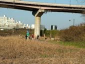 ช่วงบ่าย เราไป Yangjae Creek Park เป็นการปรัวสภาพลำน้ำกลางกรุงโซล ให้เป็นสวนสาธารณะ ที่น้ำท่วมได้ ลำน้ำนี้ยาว 3.8 กม. กว้างเฉลี่ย 150 เมตร มีอาคารที่ทำการเล็กๆ อย่างนี้ (รูปที่ 1) เราเข้ารับฟังการบรรยายก่อน (รูปที่ 2) หัวหน้าที่นี่เป็นวิศวกร พูดภาษาอังกฤษได้ดี ผู้ประสานงานอธิบายช่วยเล็กน้อย ที่นี่ ตรงกลางเป็นสายน้ำธรรมชาติ คดเคี้ยวไปมา (รูปที่ 3) กันที่ไม่ให้รุกล้ำ บรรยายเสร็จเราก็เดินดูพื้นที่ในโครงการกัน เริ่มตรงข้างๆ ที่ทำการก่อน เป็นทางลาดลงไป ใช้หญ้าท้องถิ่นปลูกคลุม โดยมีตาข่ายเชือกคลุมก่อน เป็นตัวยึดรากอีกที (รูปที่ 4) เขาบอกว่าทำให้การพังทลายของดินลดลงกว่าคลุมด้วยหญ้าเฉยๆ เยอะเลย คนงานและเจ้าหน้าที่ต่างออกมา ผิงแดด เล่นหมากรุก หมากฮอส กันข้างโครงการ ค่อยอุ่นหน่อย ดีกว่าไปนั่งในอาคาร (รูปที่ 5) ในช่วงที่รอเราฟังบรรยาย เดินตามผู้บรรยายไปดูใต้สะพานที่ไม่มีอะไรแปลกใหม่ มีเพื่อนคนหนึ่งถามว่านี่เป็นบันไดธรรมดาหรือเปล่า หลายคนก็หัวเราะ แต่ผู้บรรยายบอกว่า นี่ออกแบบให้เป็นการเติมอากาศแบบน้ำตก (รูปที่ 6) เวลาฝนลงมา จะมีบางส่วนเซาะเอาซากพืชซากสัตว์และดินโคลน การเติมอากาศจะทำให้เกิดการย่อยสลายแบบใช้ออกซิเจน ทำให้น้ำข้างล่างไม่เน่าเสีย รวมทั้งการปลูกพืชคลุมดิน ก็ลดปัญหาการเซาะดิน การพังทลายของดิน ทำให้ลดสารแขวนลอย ตะกอนต่างๆ และยังอุ้มน้ำไว้ค่อยๆ ปล่อยน้ำออกมา ก็ใสขึ้น และมีน้ำใช้ได้นาน ว๊าววว ดีจัง