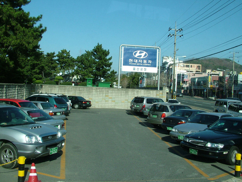 เราคืนหูฟังแล้วมานั่งรถชมต่อ ฮุนไดผลิตชิ้นส่วนทั้งหมดที่นี่ จึงมีโรงงานผลิตชิ้นส่วนต่างๆ เยอะไปหมด กว้างมากๆ เรามาถึงลานจอดรถ รอการส่งต่อกว้างสุดลูกหูลูกตาเลยครับ (รูปที่ 20-24) ถ่ายไม่หมด นี่ถ่ายมาบางส่วนเท่านั้น เรานั่งรถผ่านตั้งนาน แต่ละจุดจะส่งขึ้นเรือใหญ่ไปประเทศต่างๆ เขาจะจอดอยู่ที่ลานประมาณ 3 วัน ใช้เวลาเดินทางไปถึงญี่ปุ่น 1 วัน ไทยคงจะ 2 วัน ประมาณว่า ลานจอดนี้มีนับแสนคัน ที่นี่ผลิตรถเก๋งทั้งหมด 15 รุ่น ลานจอดแต่ละแห่ง จอดตามประเทศที่สั่ง ตลาด 50% อยู่ที่อเมริกา คานาดา และยุโรป ส่วนในเกาหลีก็ส่วนใหญ่เลย สีรถยอดนิยมของคนเกาหลี คือสีบรอนส์เงิน รองลงมาคือ สีดำ