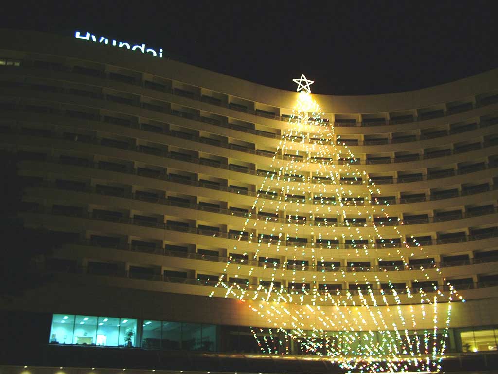 กลับมาทานข้าวเย็นที่โรงแรม ฮุนได ช่วงรอทาน ก็ถ่ายรูปในโรงแรมมาฝาก โรงแรมฮุนได ถือเป็นโรงแรม 5 ดาว ดีที่สุดในเมือง โอ่โถง จัดห้องต่างๆ ตามเทศกาลคริสต์มาสที่กำลังจะมาถึง (รูปที่ 13-19) อาหารอร่อยมาก คล้ายเมื่อวาน อาหารเยอะมาก และอร่อยมาก บุน-ซัง ชอยหอยนางรมสดมาก ที่กัมพูชาตัวละ 1 ดอลล่าร์ (ประมาณ 40 บาท) กินไป 9 ตัว โตๆ และไม่ได้สนใจเรื่องคอเลสเตอรอลสูงมากเพราะไม่ได้กินกันง่ายๆ เราคุยกันว่า วันรุ่งขึ้น จะกลับโซล เละเลยไปดูลานสกีหิมะก่อน ผู้ประสานงานดูไม่ค่อยชอบใจนัก เพราะเธออยากให้ไปดูวัฒนธรรมทัวร์ วัด ระบำ อะไรพวกนี้มากว่า บังเอิญเราไปดูกันบ้างแล้ว แต่หลายคนยังไม่เคยเห็นหิมะมาก่อนในชีวิต โดยเฉพาะพวกเขตร้อน พรุ่งนี้จะถ่ายรูปมาฝากครับ อิ่มละ กลับไปนอนก่อนนะครับ