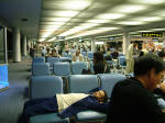 ผมรับทุนของรัฐบาลญี่ปุ่นและเกาหลี เพื่อดูงานโครงการร่วมสองประเทศเกี่ยวกับการคืนน้ำสะอาดให้ธรรมชาติด้วยเทคนิคทางนิเวศวิทยา เมื่อเช็คอินที่สนามบินดอนเมืองแล้วก็ได้รับบัตรเชิญไปพักผ่อนที่ห้องรับรองชั้นนักธุรกิจ ทั้งที่บัตรเป็นชั้นประหยัด เลยไม่ต้องไปเบียดเสียดหาที่นั่งรวมๆ กับผู้โดยสารท่านอื่น เหมือนรูปขวามือนี้ (คลิกดูภาพใหญ่) มีห้องที่สามารถเลือกพักได้สบายๆ ได้ลำพัง มีห้อง 9 ห้อง แต่ละห้องมีที่นั่งโซฟาสบายๆ ชุดหนึ่ง หรือกับผู้ที่โดยสารชั้นนักธุรกิจอื่นๆ เงียบดี มีบริการนวดฝ่าเท้าที่นี่ แต่เสียดายที่เพิ่งหยุดให้บริการเพราะดึกแล้ว มีทีวีบอกเวลาโดยเครื่องออก และที่สำคัญ มีอาหาร เครื่องดื่ม ของหวาน ให้เลือกฟรี แต่ต้องเดินไปหยิบเอง เท่าที่ดูมีถั่วทอดต่างๆ แซนวิชหลายแบบ สับปะรด แคนตาลูป แตงโม มะละกอ ขนมปัง 2-3 อย่าง ถัดไปเป็นเคาเตอร์กาแฟ เครื่องดื่มแบบกดเองน้ำฝรั่ง น้ำแตงโม น้ำสับปะรด และมีเหล้าเกือบ 20 ยี่ห้อ ผมหยิบทานพอรู้รส 2-3 จาน อิอิ น้ำอีก 2 แก้ว