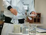 ต่อไปไปเยื่ยมชมระบบประปาของเมือง ประปาที่นี่ใช้น้ำจกทะเลสาบต้นน้ำ อยู่อีกด้านของระบบบำบัดน้ำเสีย เป็นการทำประปาให้ได้คุณภาพแบบดีเยี่ยมชนิดดื่มได้ ผู้บรรยายเป็นเข้าหน้าที่ประปาที่นี่ ใช้เพียง 1 คน (รูปที่ 18) เช่นกับที่ดูงานก่อนนี้ ทั้งต้อนรับ ทั้งบรรยาย (ซึ่งคุณก็พูดได้แต่ญี่ปุ่นเช่นกัน คราวนี้คุณ อิซูกะ-ซัง แปลให้ฟังเป็นภาษาอังกฤษ) เปืดเครื่องเสียง เครื่องฉายวิดิโอเอง ปิดม่านก็ใช้ระบบไฟฟ้า ปิดพรึบ บรรยากาศพิศวงก็บังเกิด นี่นั่งเอนได้หลายคนก็เข้าสู่พวัง ง่วงหงาวหาวนอนโดยอัตโนมัติ วิดิโอบรรยายเรื่องความเป็นมาและราวของระบบประปา พอเปิดไฟก็ตื่นกัน มีการสาธิตการทำน้ำประปาโดยการเติมสารเคมี(รูปที่ 19) มีพลาสติกทำแบบรังผึ้ง(รูปที่ 20) ช่วยในเพิ่มพื้นที่การดักจับแบคทีเรียและช่วยตกตะกอนได้เร็วขึ้น เขาบอกว่าเพิ่มพื้นที่ได้กว่า 2 ตารางกิโลเมตร ซึ่งคล้ายกับระบบประปาของกรมทรัพยากรน้ำแบบพิเศษที่ใช้แก้ปัญหาเฉพาะบางแห่งโดยเราใช้ท่อพีวีซีมัดรวมกัน แต่ที่นี่เขาสั่งโรงงานพลาสติกทำมาทีละเยอะๆ และเปลี่ยนทิ้งประมาณ 2-3 เดือน/ครั้ง จากนั้นน้ำก็จะเข้ากระกรอง(รูป 21) ด้วยคาร์บอนกัมมันต์ (ถ่านจากกะลามะพร้าว-หรือไม้เนื้อแข็ง ผ่านกระบวนการก่อกัมมันต์ให้สามารถดักจับสารพิษ โลหะหนัก และสารไม่ต้องการได้ดี) ได้น้ำมาตรฐานน้ำดื่ม ในราคาลูกบาศก์เมตรละ 91.5 เยน แล้วเราก็ไปเยี่ยมชมโรงงานผลิตน้ำ (รูปที่ 22-27)