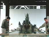 วัดแรก วัดนี้ชื่อวัด Higachi-Hongagi เป็นวันทางตะวันออกของเมือง สร้างเมื่อ 1,200 ปี ก่อน (เก่าแก่กว่ายุคทวาราวดี หรือก่อนกรุงสุโขทัย 400 ปี) ตัววัดทำด้วยไม้ สูงประมาณ 25 เมตร คือประมาณ ตึก 10 ชั้น ทางเข้าเป็นไม้ใหญ่ (รูปที่ 6) กว้างประมาณ 3 คนโอบ สลักสเลาลายสวยงามมาก อาคารหลัก กำลังซ่อม (รูปที่ 7) การซ่อมที่นี่ประณีตมากทำโครงสร้างเหล็กโดยรอบแข็งแรงขนาดนี้ เพื่อเข้าไปซ่อมรายละเอียด ที่นี่ยังเป็นที่ท่องเที่ยวยอดนิยมของวัยรุ่นญี่ปุ่นด้วย (รูปที่ 7) ก่อนเข้าชมเราต่องรอไกด์จัดการตั๋วตรงหน้าวัด (รูปที่ 8) ธรรมเนียมญี่ปุ่นก่อนเข้าไหว้พระในวัด ต้องล้างมือล้างเท้าก่อนให้สะอาดก่อน ก็คล้ายกับบ้านเรา แต่ที่นี่มีการตกแต่งที่ดูประณีตขึ้น เป็นรูปมังกรพ่นน้ำ ผมก็เลยชักชวนพรรคพวก แต่ก็ไม่ยอมมากัน เลยบอกว่าเป็นน้ำศักดิ์สิทธิ์ ถึงมาล้างกัน ก่อนเข้าอารามอามิตพุทธ (อมิตา - Ameda) (รูปที่ 10 ) ไม่น่าเชื่อว่า อารามอายุ 1,200 ปี ยังคงสภาพดีขนาดนี้ เป็นคล้ายโบสถ์ ซึ่งปิด จะเปิดเวลาทำพิธี เลยเข้าชมอาคารใกล้กัน(รูปที่ 11) คืออาคารที่ข้างนอกเป็นโครางเหล็ก (รูปที่ 7) พื้นเป็นเสื่อ ตาตามิ ทำมาจากกกญี่ปุ่นชนิดหนึ่ง เขาปูเสื่อเพราะกลิ่นหอม ให้บรรยากาศที่สดชื่น และเป็นฉนวนกันความหนาวเย็นทำให้อบอุ่นในหน้าหนาว และกันความร้อนทำให้เย็นสบายในหน้าร้อน เสื่อนี้ มีขนาดมาตรฐาน กว้าง 1.2 เมตร ยาว 2 เมตร มาตรฐานนี้ ยังเป็นตัวกำหนดขนาดห้องในบ้านด้วย โดยระบุขนาดห้องตามขนาดเสื่อ เช่น ห้องขนาด 6 เสื่อ คือห้องที่ปูเสื่อมาตรฐานนี้ 6 ผืนพอดี โคมข้างบนเพดาลเป็นแบบเดิม บุด้วยกระดาษจุดเทียน หรือตะเดียง แต่ขณะนี้ปรับเป็นไฟฟ้าแล้ว ห้องพิธีนี้นี้กว้างขนาดจุได้ 300 คน ซึ่งสมัยนั้น นับว่ากว้างมาก ส่วนด้านหน้า (รูปที่ 12) มีพระพุทธรูปหลังฉาก ซึ่งจะเปิดเฉพาะเวลามีพิธีการ เช่นกัน ข้างๆ นี้ มีเลื่อนไม้ขนาดใหญ่ (รูปที่ 13) ใช้สำหรับเลื่อนไม้ใหญ่ หรือขานาดเสา เป็นวิธีการขนย้ายไม้ในฤดูหนาว ผ่านหิมะ การเลื่อน ใช้เชือกขนาดใหญ่อย่างนี้ (รูปที่ 14) ทำมาจากเส้นผม ยุคนั้นจะมีการไว้ผมยาว เพื่อตัดมาบริจาคทำเชือกขนย้ายไม้มาทำวัด นับว่าได้บุญแรง การใช้เส้นผม ทำให้ไม่ลื่น เส้นผมยังนุ่มนวลไม่บาดมือ และเป็นฉนวนไม่ให้มือที่ลากเลื่อนหนาวเย็นเกินไปด้วย