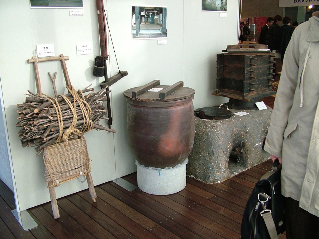 ตั้งเดินไปสัก 200 เมตร ถึงที่เล็คเชอร์ เป็นศาลาว่าการจังหวัดชิชิบุ (บ้านเราเรียกศาลากลาง) (รูปที่ 4) มีการแจกเอสารที่พิมพ์จากเพาเวอร์พอยท์ อิซูกะ-ซัง บอกว่า เป็นความลับนะ ห้ามถ่ายเอกสาร ห้ามเผยแพร่ ดูก็เป็นเอกสารเชิงวิจัยน้ำเสีย ไม่เห็นจะน่าลับอะไร เรารอเขาเตรียมการและติดต่อท่านผู้ว่าสัก 10 กว่านาที ด้วยการดูพิพิธภัณฑ์ เป็นที่แสดงประวัติของชาวบ้านชิชิบุ ที่รวบรวมๆ ของเก่า ภาพเก่า สไลด์ เรื่องราว ตั้งแต่สมัยโบราณ เช่น ห้องครัว (รูปที่ 5) จะเห็นที่แบกฟืน หม้อหุงข้าว เตา รูปต่อมา (รูปที่ 6) เป็นเครื่องซักผ้า ต่อมา(รูปที่ 7) เป็นเครื่องสีข้าว คือครกตำข้าว โม่ข้าว และยังมีเครื่องมีทางการเกษตร ของใช้ ของทำอาชีพต่างๆ มีการจัดวางและมีกล้องดูสไลด์ ภาพ 3 มิติ