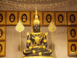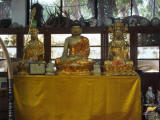 ออกมาจากอุโบสถ เป็นส่วนแสดงของพิพิธภัณฑ์ ด้านนี้เป็นพระพุทธรูป ทั้งขนาดเล็กใหญ่ (15) ส่วนใหญ่ขาดเล็กก็ใส่ตู้กระจกไว้ หลายองค์มาจากไทย ตรงกลางมีชุดโต๊ะเก้าอี้ที่ทำมาจากไม้ที่มีค่า (16) ไม้ราคาแพง มีหลายศิลปะแต่ละชุดไม่เหมือนกัน ส่วนใหญ่ประดับมุก น่าจะเป็นฝีมือช่างจีน ส่วนต่อมาเป็นชั้นบนของส่วนแรก ขึ้นบันไดไปซึ่งมีป้าย ผู้หญิงห้ามขึ้นที่บันได คงเพราะมีพระพุทธรูปที่ชั้นล่างด้วย นักท่องเที่ยวชาวศรีลังกาผู้หญิงบ่นอุบอิบเลย ทางขึ้นบันไดเริ่มมี นาฬิกา ที่นิยมมากสมัยสักร้อยปีก่อน (17) ประมาณว่าใครมีเท่ห์มาก เป็นตู้วางใต้ระเบียงพื้นเป็นกระจกเวลาเดินมองเห็นข้างๆ ชั้นบนนี้(18) จะเป็นพวกเชิงเทียนฉัตร หรือตะเกียงชั้น เป็นเสาๆ และของที่ใช้ในพิธีสงฆ์ พระพุทธรูปก็มีเยอะ ออกมาข้างนอกรั้วลูกกรงเหล็ก เป็นพวกเทพ เทวดา ในอิริยบทต่างๆ (19-20) และภาพเขียนสี