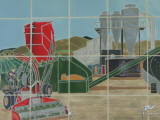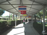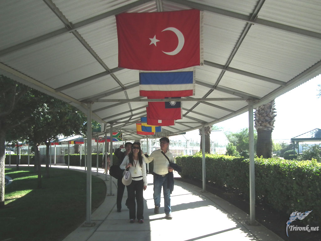 ออกมาข้างนอกอาคาร ยังคงเป็นส่วนของศูนย์วิจัยทางการเกษตรอยู่ มีบางคน ยังอยากถ่ายรูปกับธงชาติไทยในต่างแดน แบบว่ารักชาติ (1-3) จากนี้เราจะแวะอาคารวิจัย (4) นักวิทยาศาสตร์ยังใฃ้ทำการวิจัยอยู่ แต่วันนี้ไม่เปิด เราเวะห้องน้ำที่นี่ และถ่ายรูปกับป้ายในอาคาร (5-7) และ ผมแอบจิ๊กภาพจากกล้องคุณอ๋อมาให้ดู เป็นภาพกราฟิค ที่ได้จากการทำเซรามิค ประดับข้างฝาผนังภายนอก คุณจอร์จี้บอกเพิ่งทำใหม่ เพื่อไม่ให้ผนังห้องดูโล่งเกินไป ผู้ชมจะได้ไม่เครียด แต่ก็ไม่ได้ถามว่าทำใหม่ม่ากี่ปีแล้ว สวยดีครับ ผมว่าผมก็ถ่ายมานะ แต่หาภาพไม่เจอ