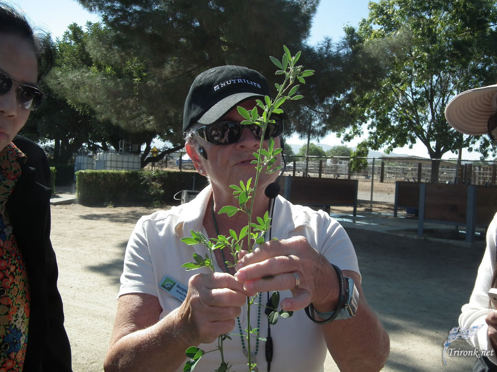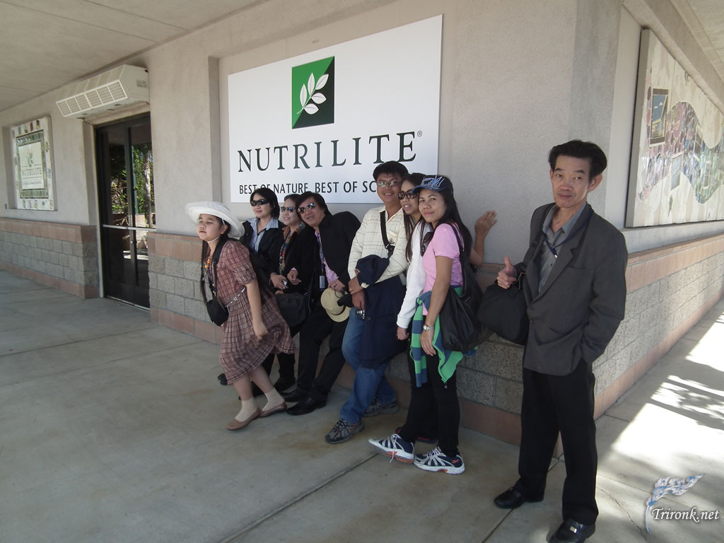 ตอนที่อยู่รูป 25 ไม่เห็น ดอก ตรงนี้โรสแมรี่ (37) มีดอกด้วย สวยดีนะ โรสแมรี่ เป็นไม้ยืนต้นที่มีถิ่นกำเนิดในแถบเมดิเตอเรเนียน เป็นพืชตระกูลมิ้น โรสแมรี่ มาจากชื่อน้ำค้างทะเล โรส (Ros แปลว่าน้ำค้าง แหม นึกว่า Rose ที่แปลว่ากุหลาบเสียอีก) ใช้ทำเครื่องปรุงในอาหารเมดิเตอเรเนียน เชื่อว่ามีฤทธิ์เพิ่มหน่วยความจำ จึงใช้ทั้งพิธีแต่งงาน จนไปถึงงานศพที่ทำให้จำได้ แต่ในนิวทริไลท์พบว่ามีสารต้านอนุมูลอิสระมากมาย เลยใช้สกัดทำผลิตภัณฑ์อาหารเสริมที่สำคัญตัวหนึ่ง มีดาวเรืองที่นี่ด้วย (38-39) ปลูกเพื่อใช้ทดลองวิจัย มักใช้เป็นสารช่วยดูแลการมองเห็นในตา บางกลุ่มก็ใช้เป็นแหล่งเมล็ดพันธุ์บ้าง (40-45) เราเจอ ดอกอัลฟาฟ่า ที่นี่ด้วย อัลฟาฟ่า เป็นพืชตระกูลถั่วที่ให้โปรตีนสูงมาก และเป็นโปรตีนที่ร่างกายเราสังเคราะห์ไม่ได้ด้วย จึงเหมาะที่จะใช้เป็นสารเสริมอาหาร ที่นี่ปลูกเป็นแปลงทดลองที่ปลูกเยอะมาก ถือเป็นพืชสำคัญที่สุดตั้งแต่เริ่มนิวทริไลท์ 75 ปี ที่แล้ว ยังคงพบสารพิเศษที่เรียกว่าไฟโตนิวเทรียนส์อยู่เรื่อยๆ ธรรมดาถั่วที่เราเห็นจะรับประทานฝักหรือเมล็ด แต่อัลฟาฟ่าใช้ยอดอ่อนในช่วงออกดอก แล้วคั้นน้ำเอากาออก ทำให้แห้งด้วยอุณหภูมิต่ำ จะได้ผงที่สารพัดประโยชน์ที่จะใช้ได้ในการผลิตสารเสริมอาหาร