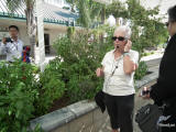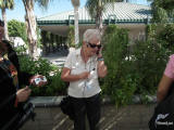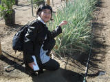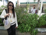 เรารออยู่นานนิดหนึ่ง คุณจอร์จี้ติดต่อประสานงานกับคุณลุงอีกคน เนื่องจากมีกลุ่มนักธุรกิจจีนประมาณ 30 กว่าคน นัดก่อนกลุ่มเรา เพิ่งมาถึง และพยายามจะรวมกลุ่มเรา ตอนอยู่แปลงทดลองเพื่อการวิจัย (แถวนี) แต่เนื่องจากกลุ่มจีน เป็นกลุ้มใหญ่ และส่วนใหญ่ฟังภาษาอังกฤฤษไม่ออก ล่ามพยายามแปลให้ฟัง เป็นกลุ่มย่อยหลายกลุ่ม กระจัดกระจาย ทำให้ล่าช้า ในที่คุณจอร์จี้ตัดสินใจไม่รวมกลุ่ม และบรรยายกลุ่มเรา 10 กว่าคนนี้เท่านั้น บริเวณนี้เป็นพื้นที่ ปลูกพืชตัวอย่าง เพื่อการวิจัย (11) มีการปลูกไม้ดอกประดับข้างทางบ้าง (12) อันนี้ไม่เกี่ยวกับการวิจัย แต่ผมว่าสวยดี คุณต่างถ่ายกับใยกระเพรา (13) เทียบกับบ้านเรา ใบโตอุดมสมบูรณ์ดี นั่งรอ (14) และโดนแอบถ่าย (15) และคุณจอร์จี้ ที่ที่ทางเคร่งเครียดกับการเคลียร์คิว (16-17)