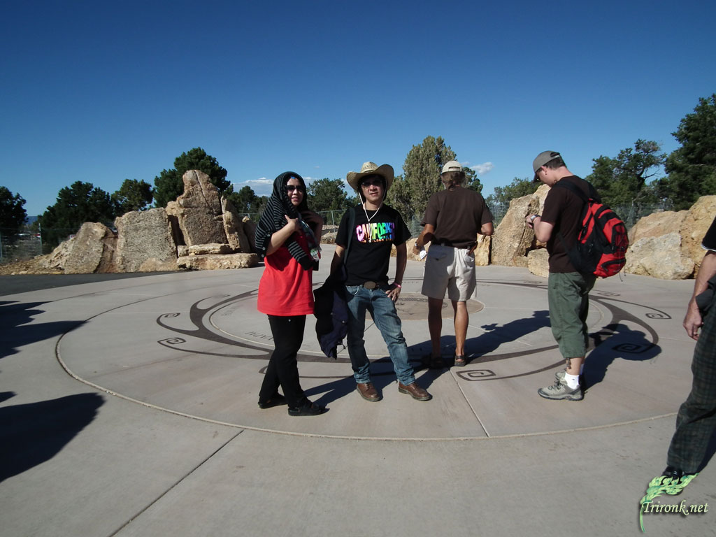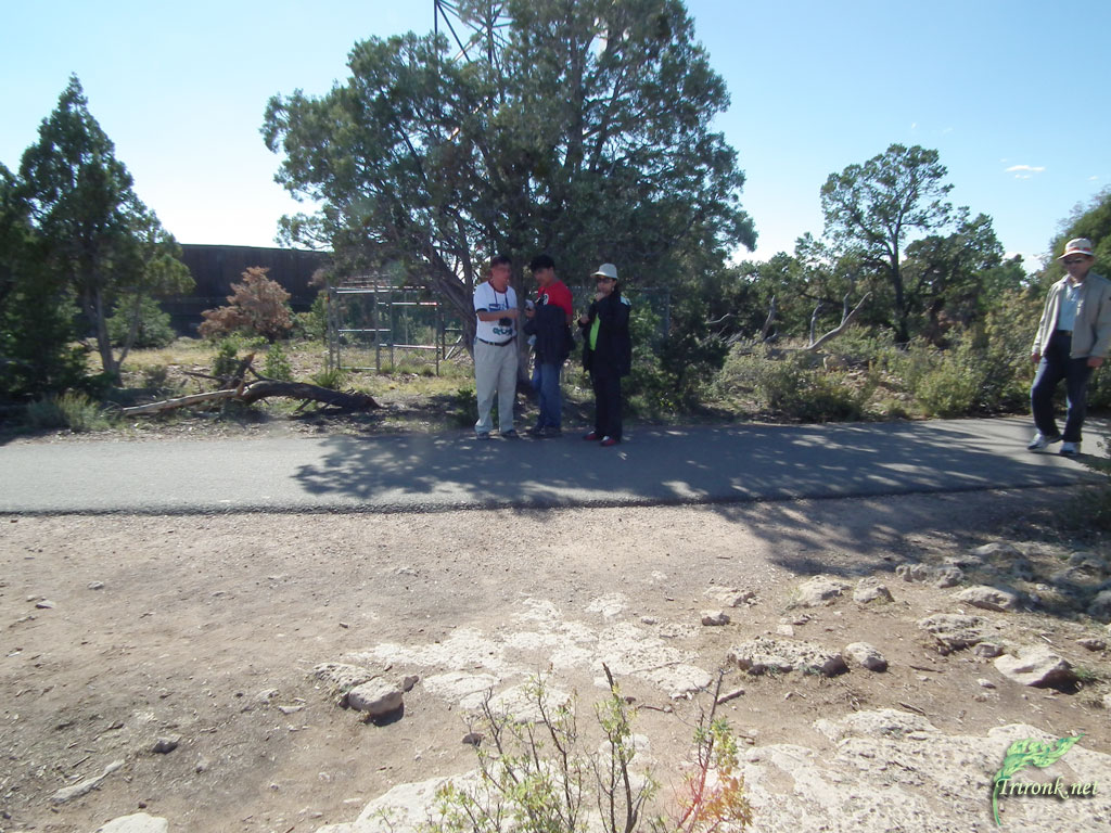เราออกมากันแล้ว มีป้ายอยู่ตรงขาออก แปลกนะ ไม่มีขาเข้าเหมือนบ้านเรา เลยทางออกมาหลายร้อยเมตร เป็นจุดแวะถ่ายรูป มีโครงเหล็กที่ใช้วางกล้องให้ตรงจุดที่เหมาะสมข้างหน้าด้วย สำหรับคนที่ต้องการให้กล้องถ่ายเองอัตโนมัติ กรณีไม่มีใครถ่ายให้ ตอนไปมีฝรั่งกลุ่มละ 7-8 คน พยายามถ่ายรูปโดยใช้โครงเหล็กวางกล้อง และวิ่งเข้าไปในกล้อง แต่ไม่ทัน เพราะกล้องเขาตั้งแค่ 5 วินาที ผมเลยอาสาถ่ายให้หลายรูป เขาซาบซึ้งมาก เพราะได้ภาพสวยงามดีกว่าตั้งกล้องถ่าย แล้วก็ทยอยขึ้นรถกลับ เราก็ได้โอกาสถ่ายบ้าง (43-48) ฝรั่งผู้ชายที่ผมถ่ายรูปหมู่ให้ กลับลงมาจากรถ และขออาสาถ่ายรูปให้พวกเราด้วย เลยได้รูปนี้มา (49) สวยมาก เพราะมีเวลาจัดภาพ โพสท่าที่เหมาะกว่า ขอบคุณครับ