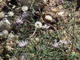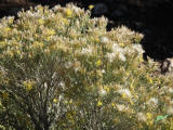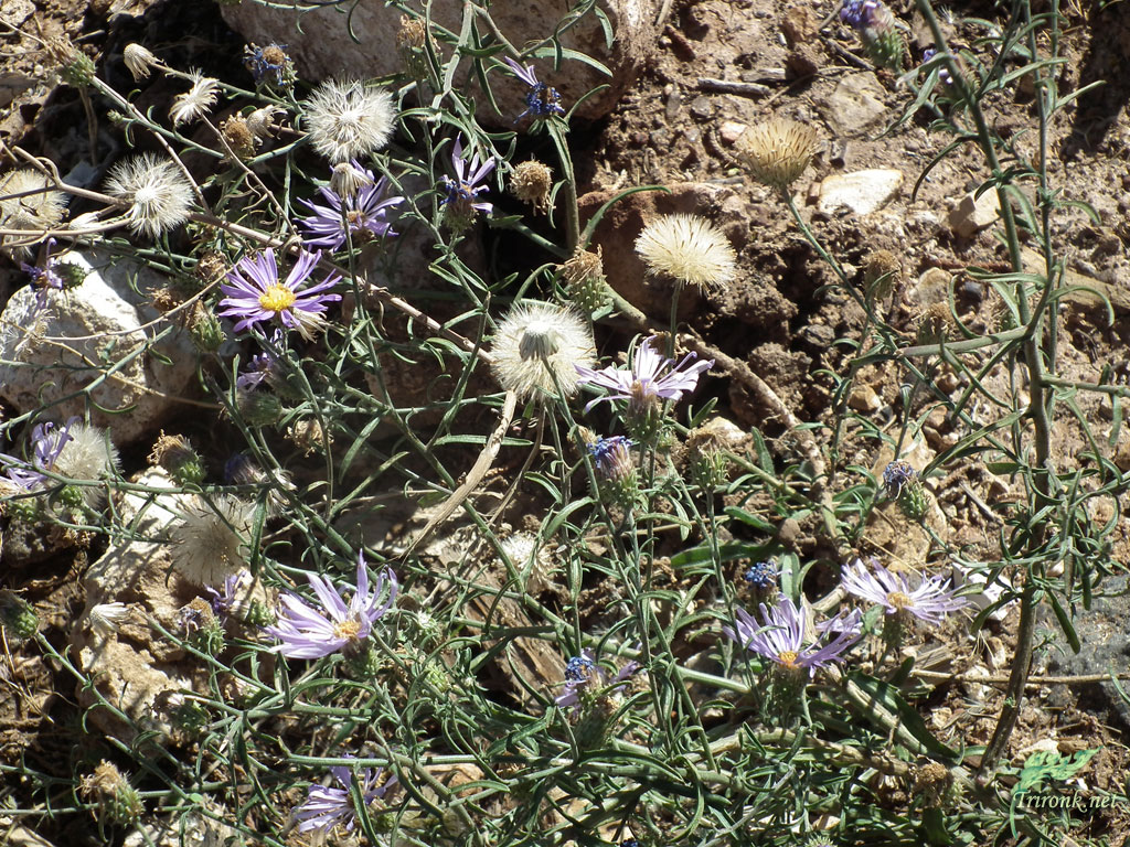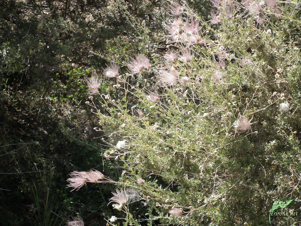 ตรงนี้เป็นหน้าห้องน้ำ ที่พืชกึ่งทะเลทรายขึ้นประปราย ผมไม่ทราบว่าชื่ออะไร แต่ดูมันใหญ่โตสูงเท่าคนเลย มีหลายต้นหลายพันธุ์ คงเพราะน้ำดีปุ๋ยดีใกล้ห้องน้ำทำให้ชุ่มชื้นจนดอกบานสะพรั่งอายุยืนยาว และสวยดี เนื่องจากที่นี่ลมมักแรงเสมอ พืชจึงปรับตัวให้มีขนนุ่ม ฟู เมื่อแห้งแล้วจะนำเมล็ดแห้งโดยสารไปได้ไกลจากจุดกำเนิด ด้วยลมพัดพากระจายถิ่นที่อยู่