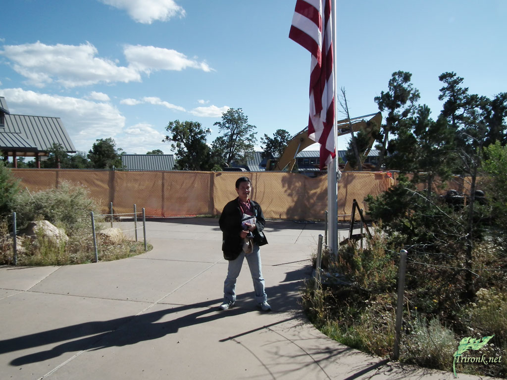 อันที่จริง ศูนย์ข้อมูลนักท่องเที่ยวเราควรมาแวะก่อน แต่เราต้องการดูมากกว่าศึกษา เลยคิดว่าถ้ามีเวลาค่อยแวะ ช่วงรอเพื่อนๆ ก็เข้าไปเก็บข้อมูล คุณกบไปเก็บข้อมูลโบรชัวร์ บัตรลงทะเบียน อะไรมาเยอะ ดูเหมือนน้องทราย ก็เพลินจนลืมกล้องวางทิ้งไว้ที่นี่ ฝรั่งหยิบมาดูและพยายามเปิดดูว่าเป็นของใคร และช่วยกันตามหาจนเจอ เราขอบคุณในน้ำใจไมตรีที่ทำให้ที่นี่น่าเที่ยวขึ้นอีกเยอะ ผมถ่ายรูปกับคุณอ๋อ ผลัดกัน (35-36) และขอข้างในอีกรูปกับแผนที่ใหญ่ของรัฐ(37-38) รวมทั้งธงชาติที่นี่ (39-40) และป้ายขาออก (41) เก็บหมด