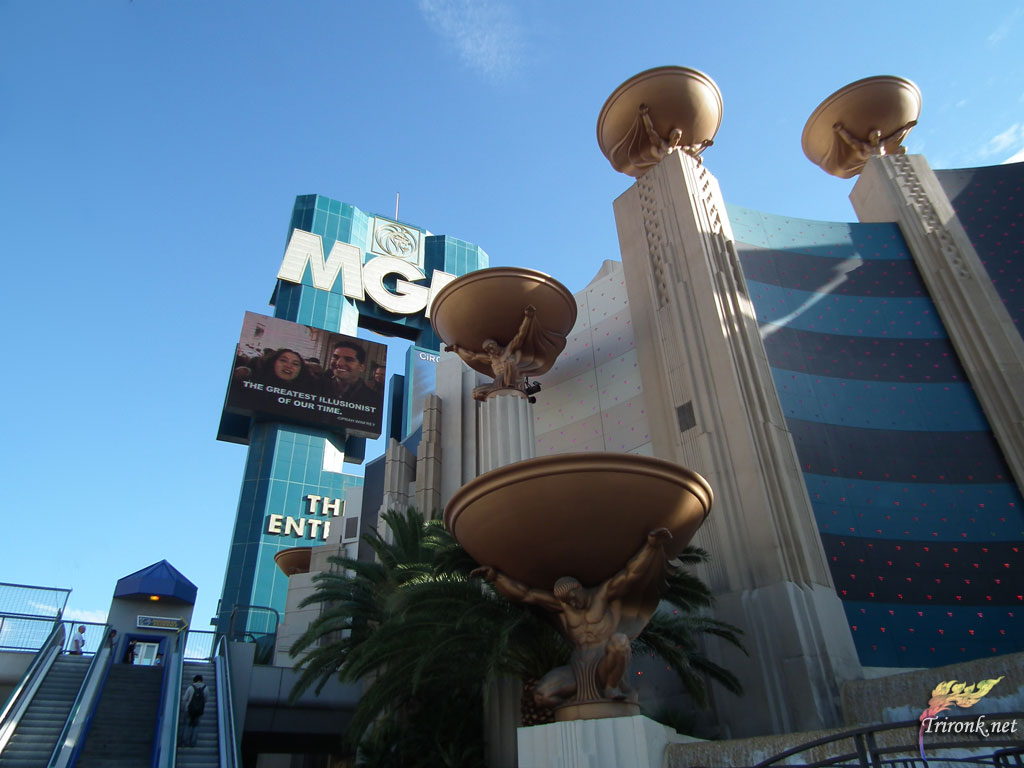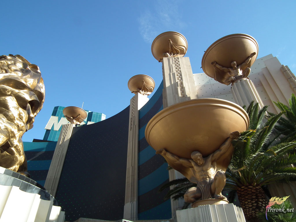 เอ็มจีเอ็ม แกรนด์ ลาสเวกัส (1-7) นี่คือโรงแรมที่เคยใหญ่ที่สุดในโลก เมื่อมันก่อตั้งขึ้นในปี 1993 มีพื้นที่ถึง 35,000 ตารางเมตร อาคารหลัก แม้ปัจจุบัน จะกลายเป็นที่ 2 ของโลก แต่ถ้าพูดถึง โรงแรมแบบรีสอร์ท ก็ยังใหญ่ที่สุดในอเมริกา ในอาคารมีห้องพัก 5,044 (4,293 ห้องพัก และห้องสวีท 751 ห้อง) กับอีก 576 ห้องสวีทในอาคารแกรนด์ และอาคารเดี่ยว 29 หลัง เป็นโรงแรมที่ได้ระดับหรูหราสูงสุดคือ 5 เพชร (เคยได้ยินแต่ 5 ดาว) ในส่วนแกรนด์เพนท์เฮาส์ ชั้น 2 อาคารแกรนด์ ที่นี่มีสารพัดความบันเทิง และที่สะดุดตาอีกอย่างคือสิงโต ชื่อ เลโอ เป็นการใช้โลหะบรอนซ์ มีสร้าง สูง 14 เมตร บนฐาน 7.5 เมตร หนัก 50,000 กิโลกรัม เป็นรูปปั้นบรอนซ์ทีใหญ่ที่สุดในอเมริกา เขาใช้เป็นสิ่งเสริมฮวงจุ้ยแทนมังกร เชื่อว่าสิ่งโชคร้าย จะถูกสิงโตเลโอกินหมด (ข้อมูล: http://en.wikipedia.org/wiki/MGM_Grand_Las_Vegas)