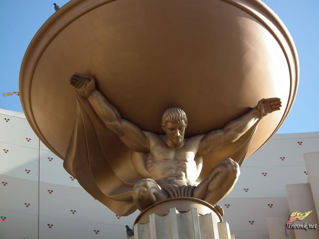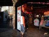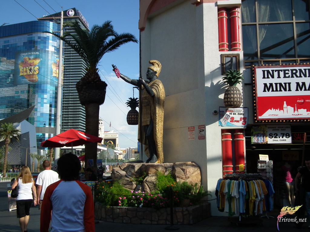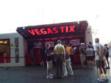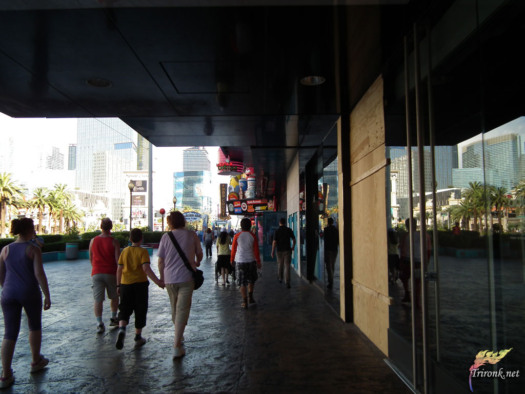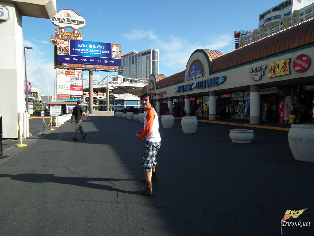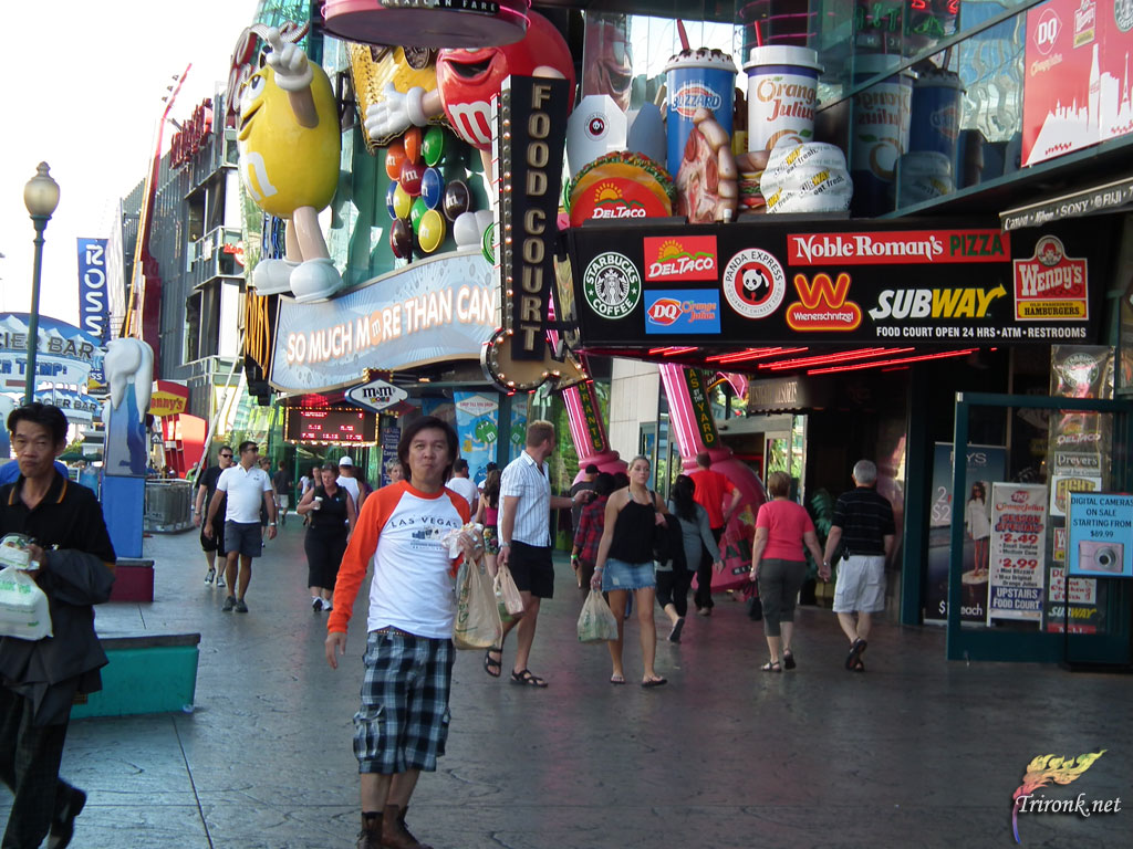 มีร้านขายตั๋ว ทุกอย่างซื้อได้จากร้านขายตั๋วด้วย (16) ด้วยความสงสัยว่ากลางวันเขามีอะไรกันอีก เลยแวะไปอ่าน ที่เข้าแถวนี้ เป็นการโชว์ สรีระ ของหนุ่มๆ เหอๆ มิน่าละ คนที่เข้าแถว มองเราด้วยสายตาแปลกๆ คือเขาโชว์ทั้งวันทั้งคืนแหละ เป็นรอบๆ ตลอด ที่นี่ราคาถูกกว่าหน้างาน และเลือกรอบได้ง่ายจากหลายๆ สถานที่แสดง คนทำงานและนักท่องเที่ยวตอนเช้าๆ มีประปราย (17) ค่อนข้างโล่ง เราผ่น มอนติคาโร โรงแรมใหญ่ ที่เราถ่ายหลายรูปเมื่อคืน (18-21) บรรยากาศต่างกันมาก มาถึงมินิมาร์ท และตลาดขายของที่ระลึก ราคาถูกอีกแห่ง (22) ดีใจมาก มีเซเว่น ด้วย แวะไปซื้อของกินกันแถวนี้ครับ ราคาถูก มีอาหารเช้า ขนมปัง นม กาแฟ ผลไม้ อะไรพวกนี้ อิ่มแล้วเดินต่อ ยังไม่หมดกินไปด้วยจะน่าเกลียดหรือเปล่าคุณ คุณอ๋อถาม (23) ผมบอกกินๆ ไปเถอะ ฝรั่งไม่เรียบร้อยเท่าไหร่ม้าง อีกอย่างไม่มีใครรู้จักเราหรอก (แน้... ไม่อยากเสียเวลานี่) มีป้ายโฆษณา สกายวอร์ค (24) ของแกรนด์แคนย่อน แต่เราไม่ได้ไปเมื่อวานไปมาเตอร์วิวแทน เพราะไกด์บอกถนนปิดซ่อมแซม มีรูปปั้นนักรบโรมันที่ หาคำอธิบายไม่เจอ คิดว่าอาจเป็นกึ่งๆ อนุสาวรีย์ หรือรูปปั้นประดับมากกว่า(25)