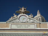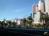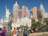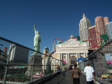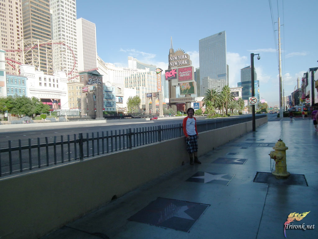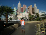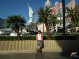 มองจากสี่แยก เช้าๆ รถว่างๆ ต่างจากกลางคืนที่พลุกพล่าน (8) เดินลเอม็มจีเอ็ม เป็นบันไดเลื่อนกลางแจ้งตัวใหญ่ (9) อยู่ด้านหน้าโรงแรมเพื่อขึ้นทางข้าม และไปชั้น 2 เพื่อชอแง ชั้นล่างที่นี่กว้างขวาง จึงต้องสูงไม่อึดอัด ทางขึ้นเลยสูงไปด้วย หันหลังไปมองเห็นโรงแรมที่เราพัก ใหญ่โตขนาดนี้ (10) มาเองคงไม่กล้าเดินเข้าไปพัก ฟากโน้นเป็นโรงแรมทรอปิคาน่า ลาสเวกัส พี่ยุทธเป็นนายแบบ ตรงนี้เป็นเกาะนิวยอร์คของโรงแรมนิวยอร์คนิวยอร์ค (12) และเทพีสันติภาพ (13-14) เป็นโรงแรมด้านหน้าโรงแรมที่เราพัก ให้บรรยากาศ นิวยอร์ค ดี แวะซื้อของที่ระลึก ราคาไม่แพงมากแถวๆ นี้ (15) และเดินเล่นต่อ